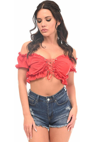 Red w/Black Lace Overlay Ruched Bustle Skirt