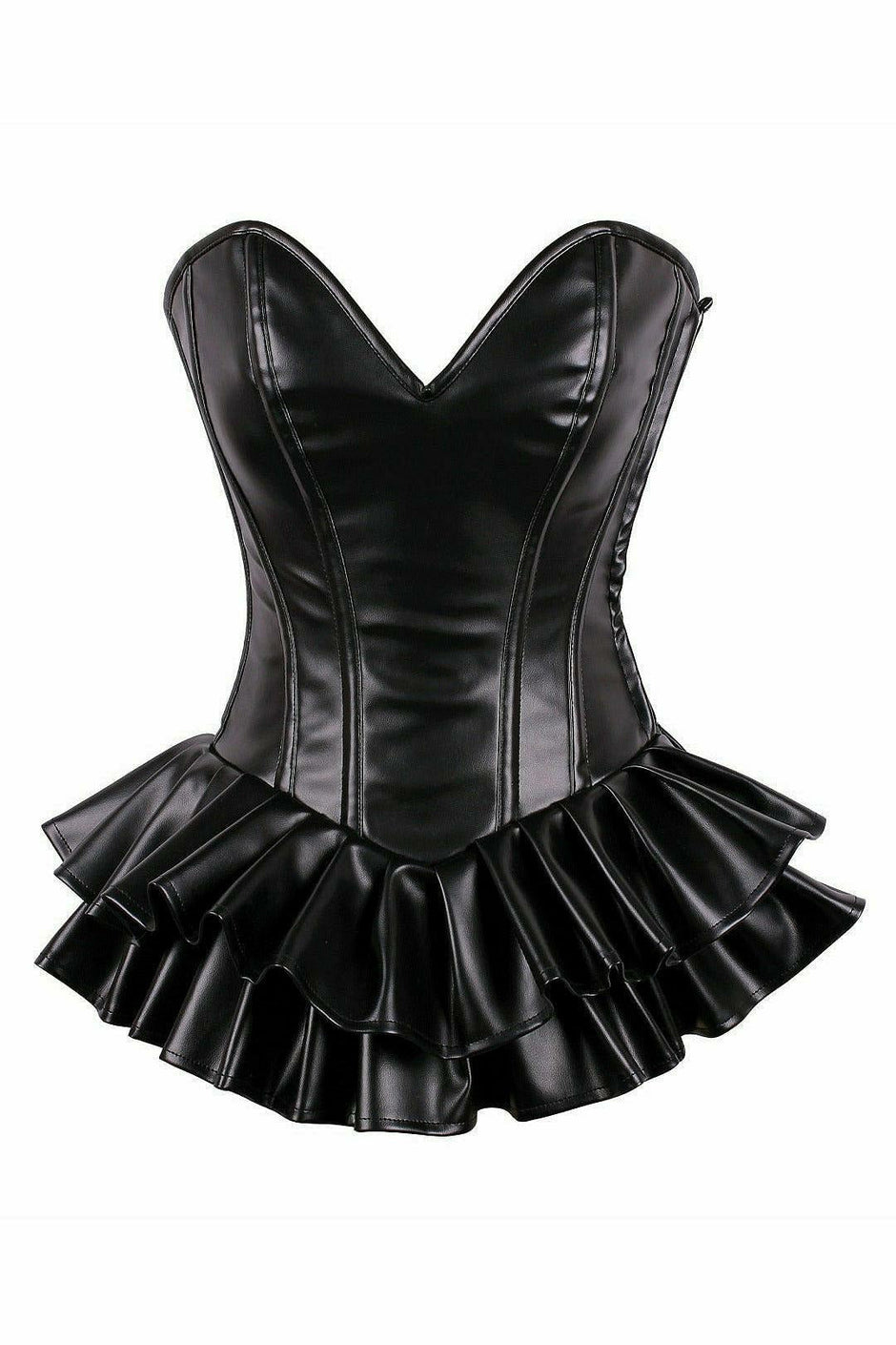 Top Drawer Black Faux Leather Steel Boned Overbust Corset