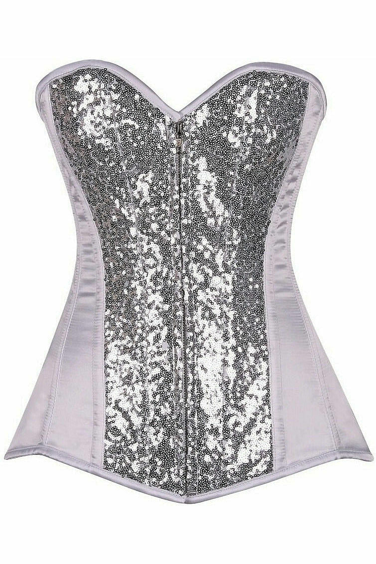 Top Drawer White/Silver Sequin Steel Boned Corset