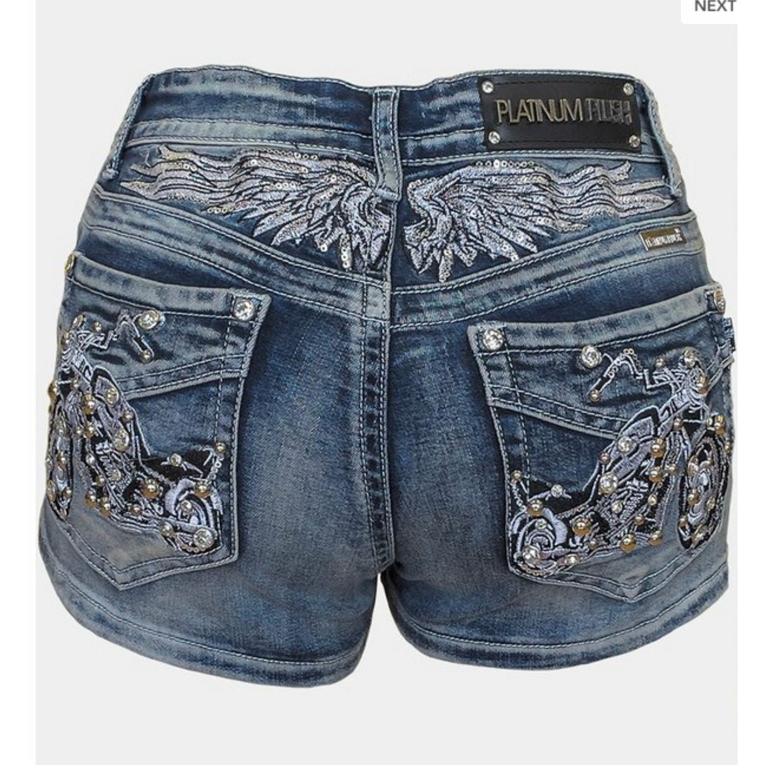 Riding Free Motorcycle Rhinestone Embellished Shorts