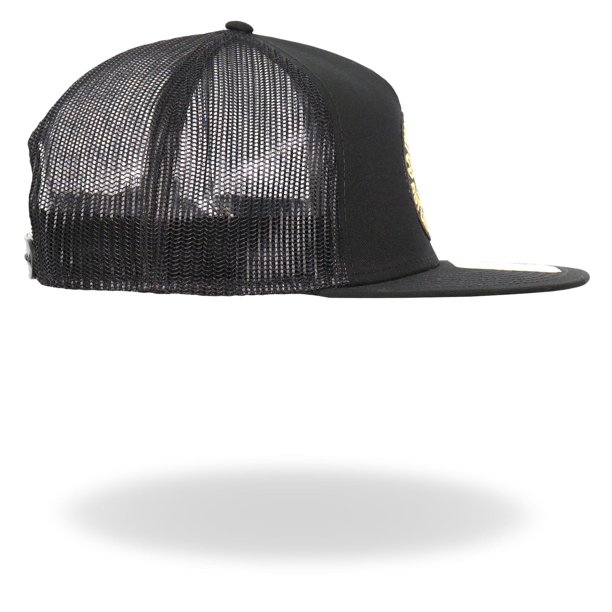 Hot Leathers® snap back trucker hats are made from high quality 5 panel construction. Each one is adjustable with a plastic snap closure and a flat bill featuring an original Hot Leathers® patch that will let everyone know exactly how you feel!