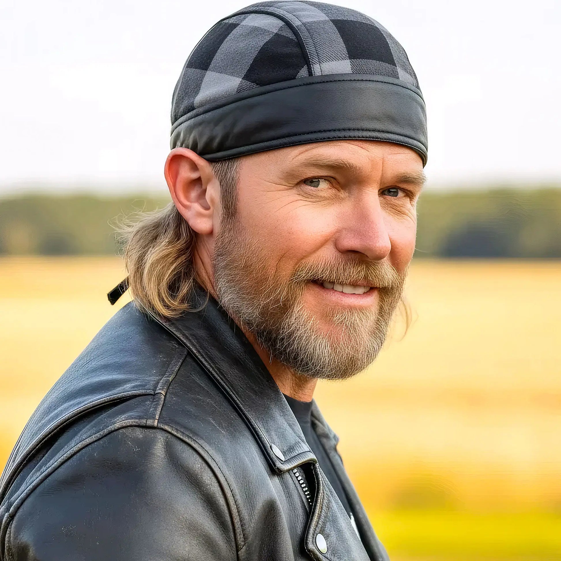 Whether you're hitting the road for a joyride on your motorcycle, getting together with your club, or just need some UV protection and sweat control, Hot Leathers premium doo rag head wraps are just what you need! Put on your new headwrap bandana while you run errands or handle some yard work. Represent your unique style with our moisture wicking, mesh lined head wraps, showcasing bright, long lasting designs sure to turn heads! This head wrap features our original gray and black flannel design with just a touch of leather to give it some edge.