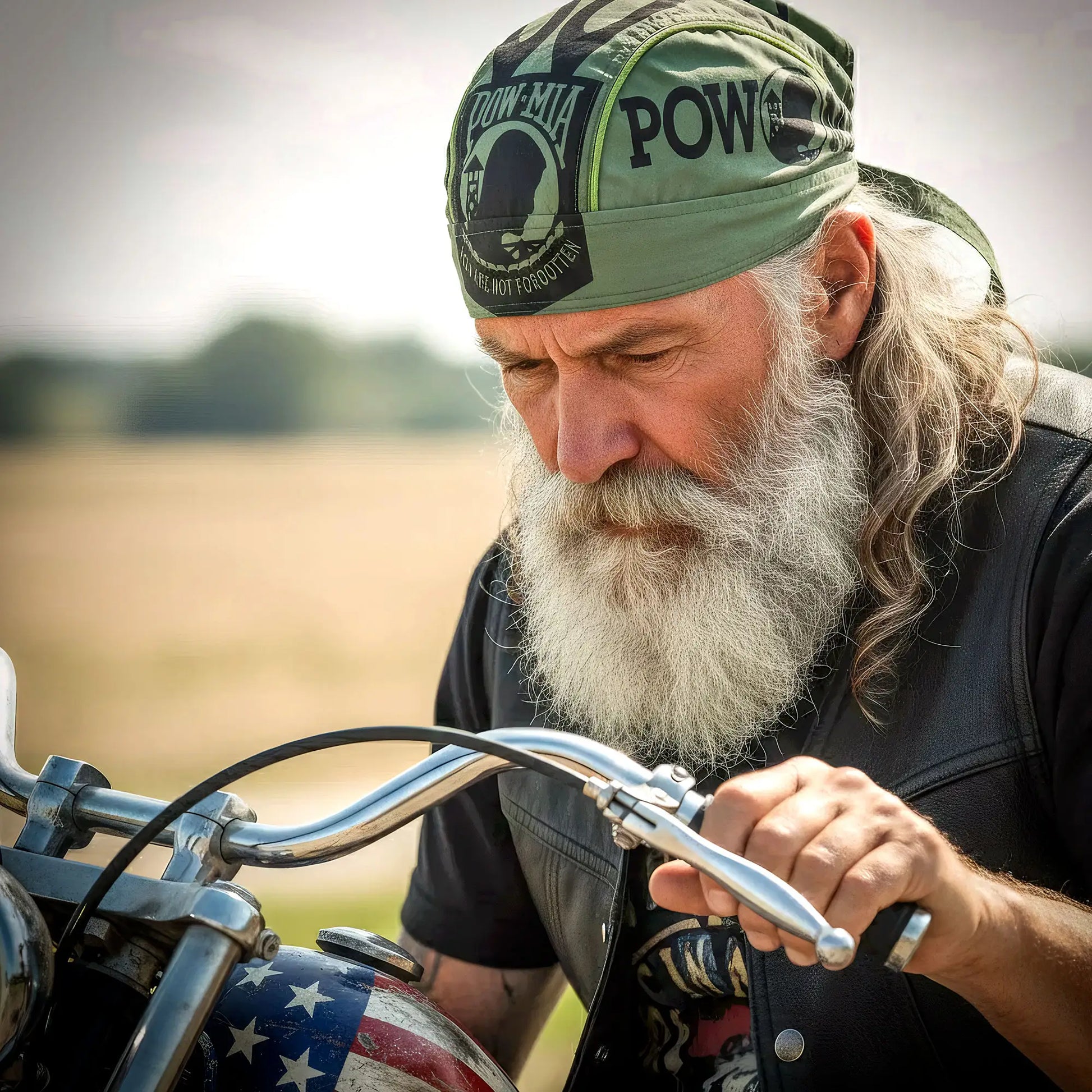 Whether you're hitting the road for a joyride on your motorcycle, getting together with your club, or just need some UV protection and sweat control, Hot Leathers premium doo rag head wraps are just what you need! Put on your new headwrap bandana while you run errands or handle some yard work. Represent your unique style with our moisture wicking, mesh lined head wraps, showcasing bright, long lasting designs sure to turn heads! This head wrap features our original military green and black POW design.