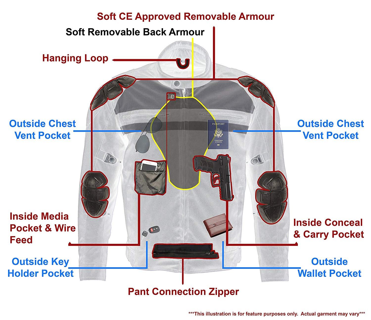 M Boss Motorcycle Apparel BOS11705 Men's Black Mesh and Nylon Motorcycle Racer Jacket with Armor Protection