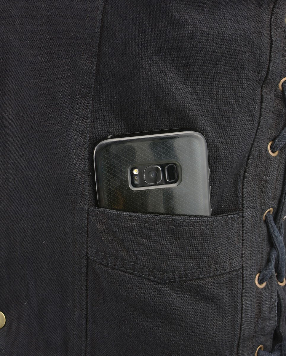 M Boss Motorcycle Apparel BOS13003 Men's Blue Denim Motorcycle Side Lace Vest with Quick Draw Pocket
