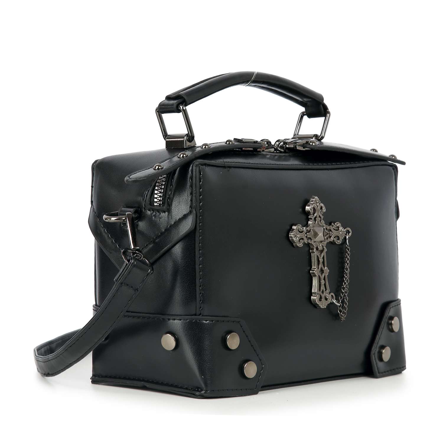 The Midnight Relic Cross Bag blends dark elegance with rebellious edge. Featuring an ornate cross detail with chain accents, this piece feels equal parts vintage, gothic, and unapologetically bold.