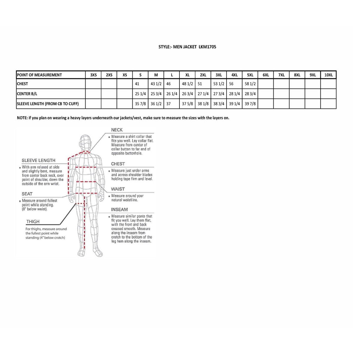 - Full Sleeve Zip Out Thermal Liner