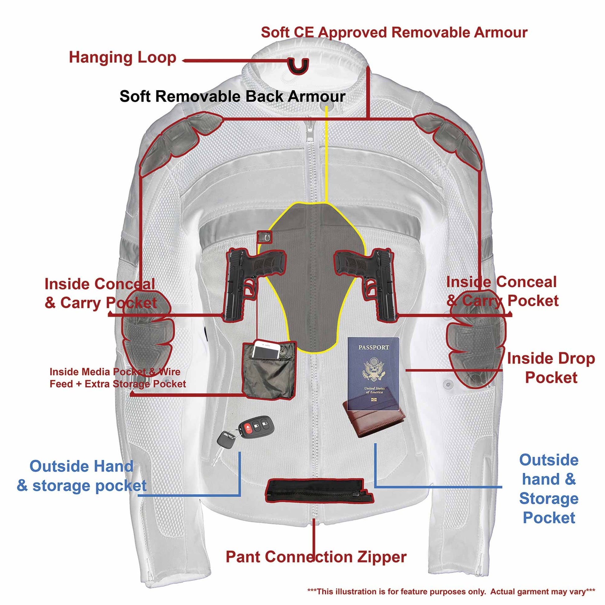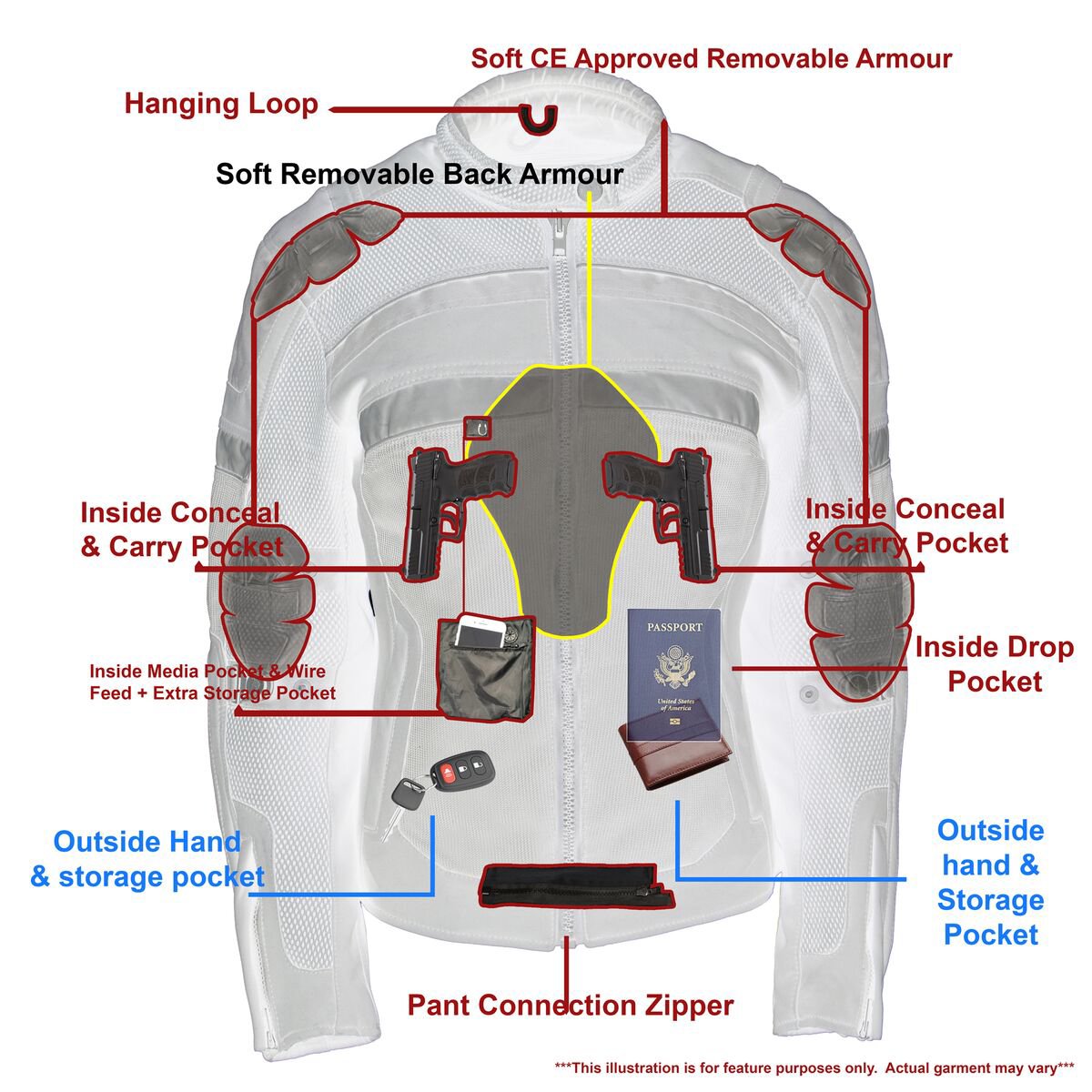 - Removable CE Approved Armor on Both Shoulders and Elbows (Included)