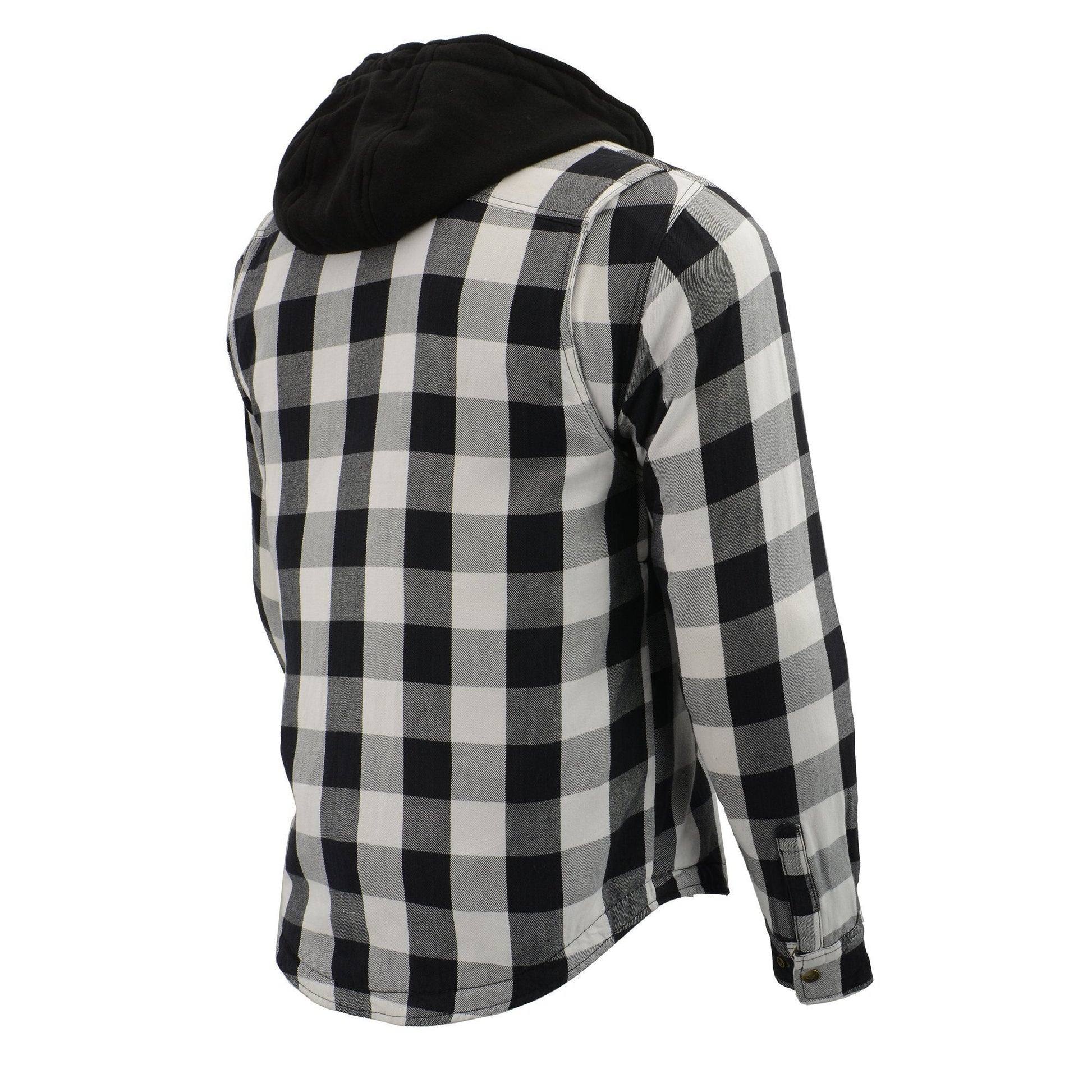 Milwaukee Leather MPM1629 Men's Plaid Hooded Flannel Biker Shirt with CE Approved Armor - Reinforced w/ Aramid Fibers