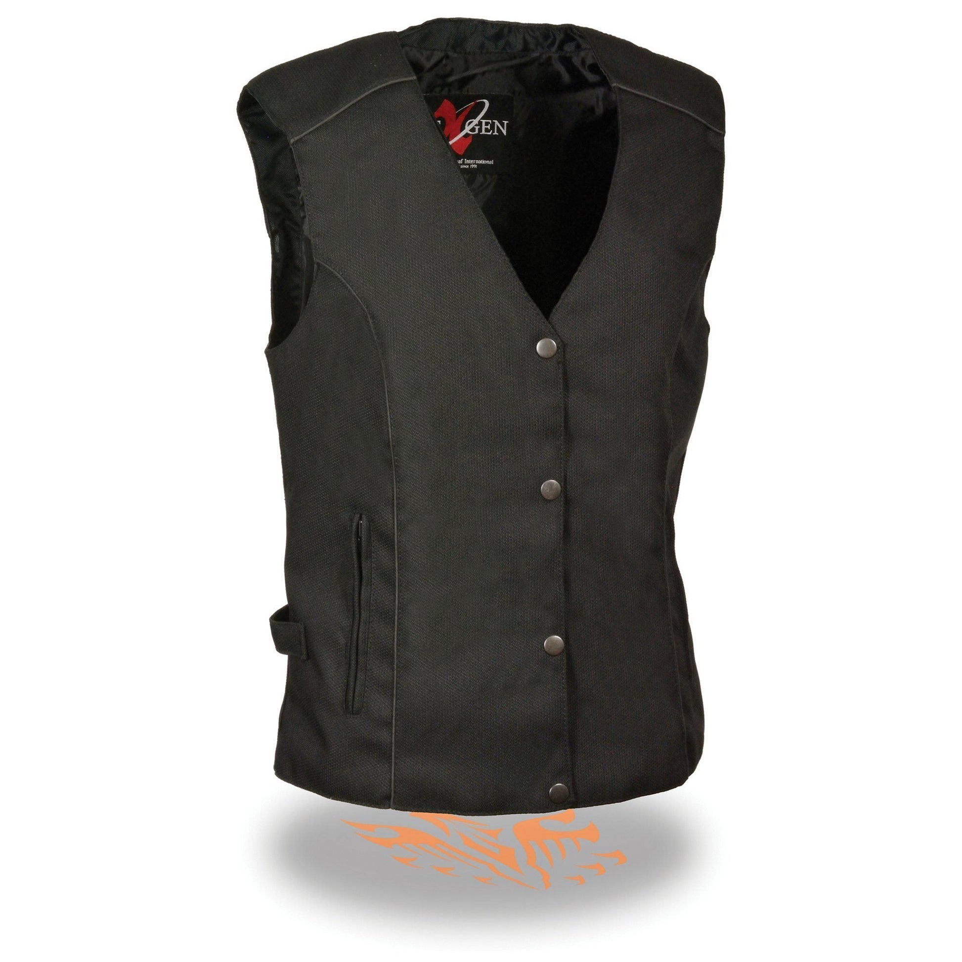 Milwaukee Leather SH1955 Ladies Black and Purple Textile Vest with Wing Embroidery