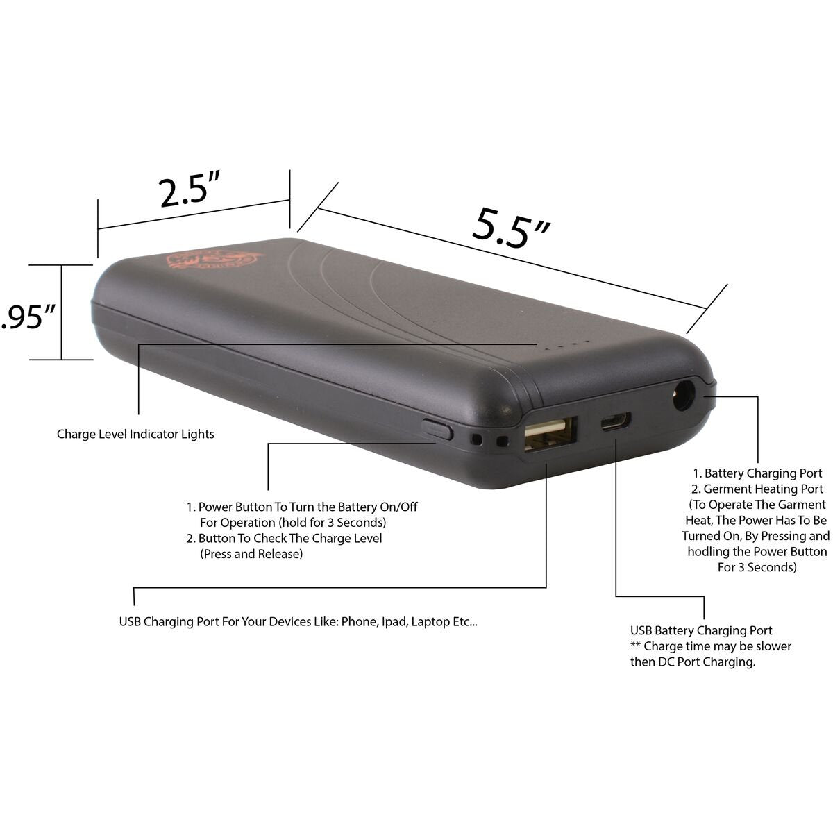 - Inside Built in Waterproof Pocket Holds Portable Battery Pack
