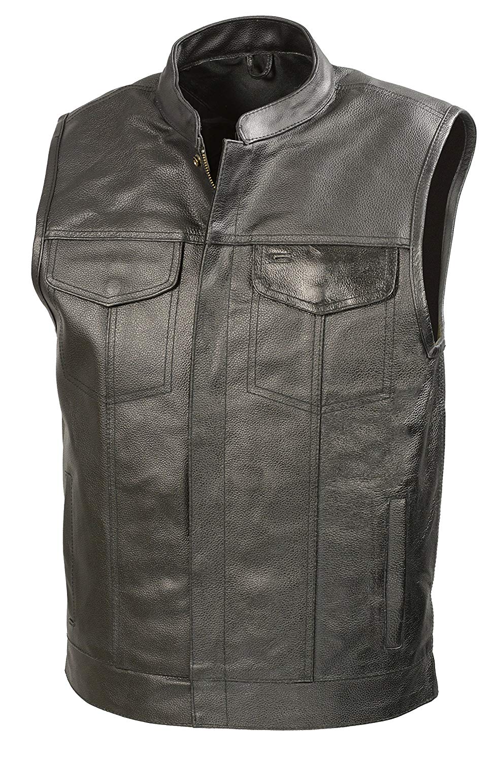 SOA Men’s Black Premium Leather Club Style Motorcycle Riding Vest BZ6210