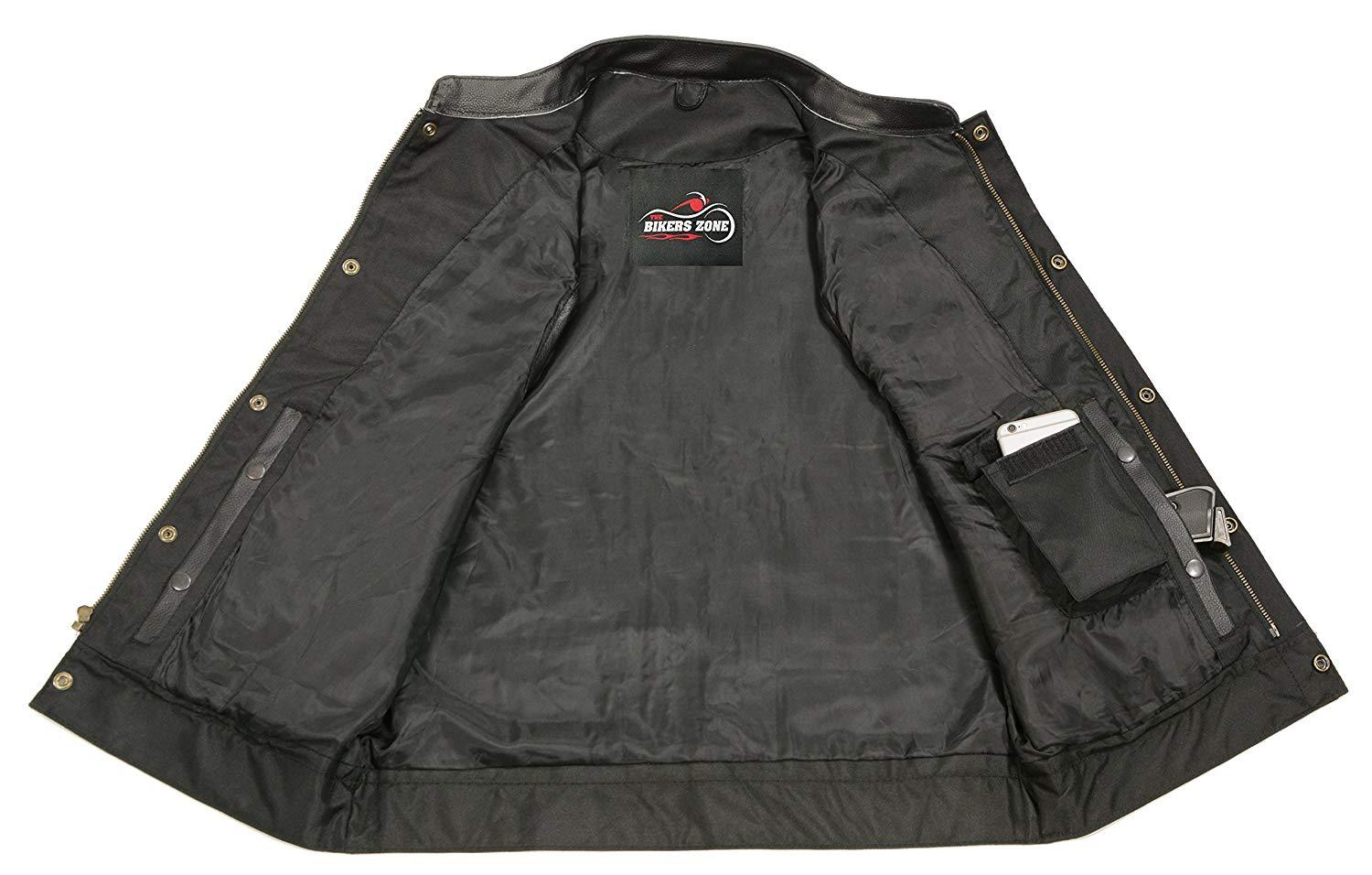 SOA Men’s Leather Club Style Vest with Conceal/Carry Pocket BZ6210
